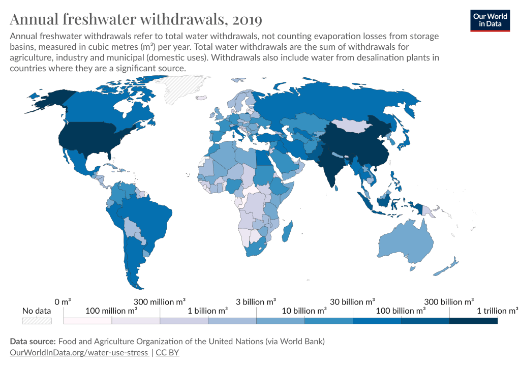 Nel 2019, la situazione del prelievo e del consumo mostra la variabilità del prelievo di acqua sulla Terra.